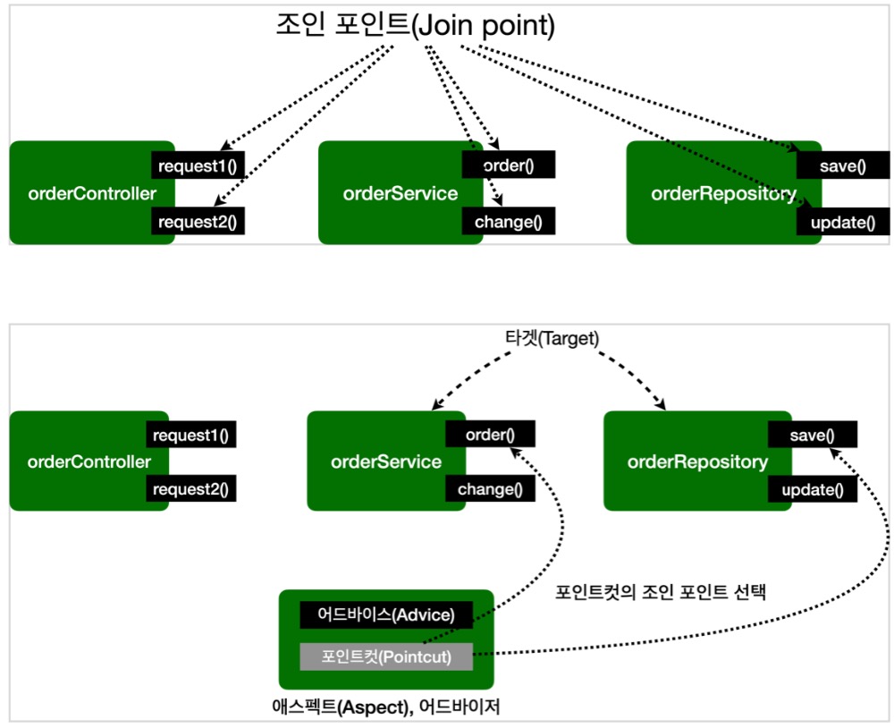 - 스프링 AOP에서만 사용되는 특별한 용어